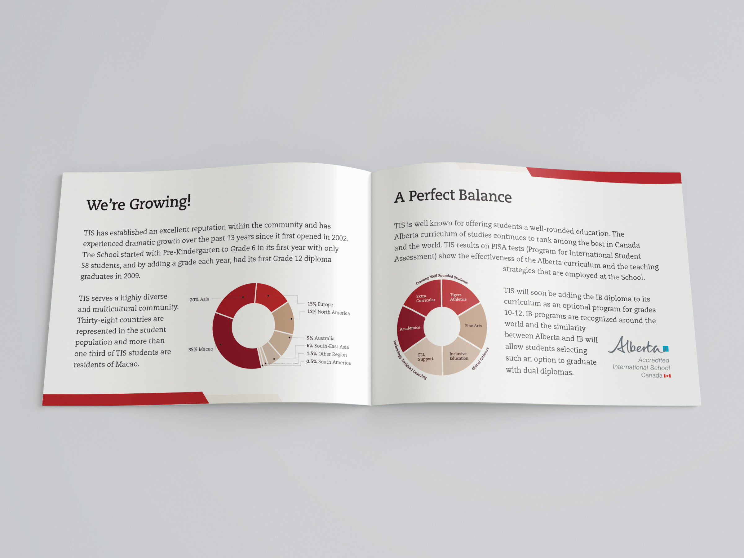 The 40-page fundraising booklet combines infographic elements, alumni stories and family testimonials to present a broad look at the vision and direction of TIS as it promoted the Phase II campus development project.